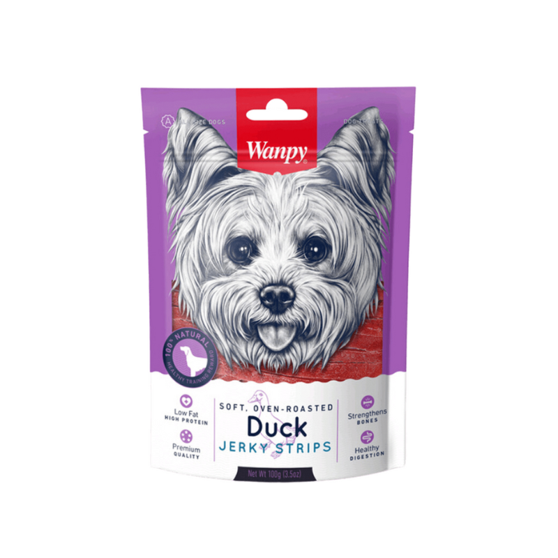 Wanpy Duck Jerky, 100% naturales para perros adultos de todas las razas y tamaños. Premio de alta calidad ideal para dar como una recompensa saludable al entrenamiento.